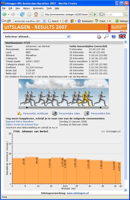 Score Amsterdam Marathon 2007, personal position is 1386 out of 6527 finishing.