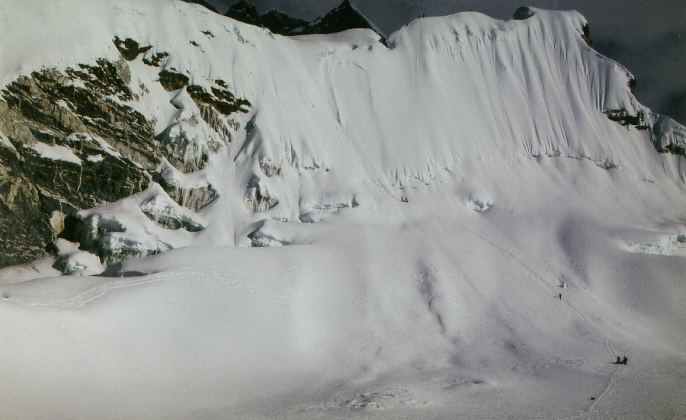 why we did not use ropes. At a distance we witnessed a large avalanche coming