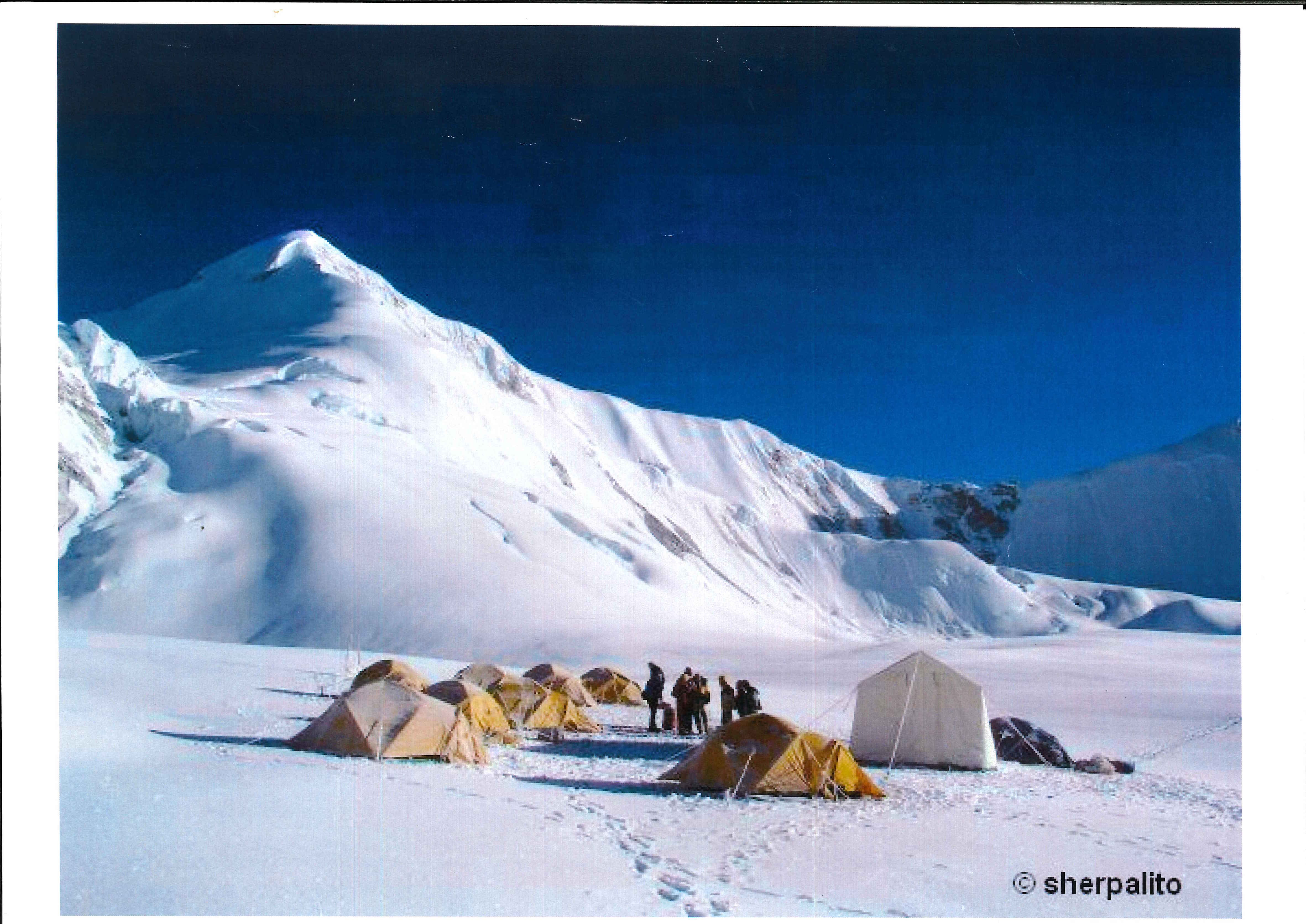 The porters all made it to base camp but the other 13 members stayed at the 6100 m advanced base camp, some involuntarily as it would take them 4 hours to go down and they did not arrive at the advanced base camp until 4 or 5 PM due to long delays during the rappels and walking at 6100 m is slow. Most of the mountain guides also stayed there.