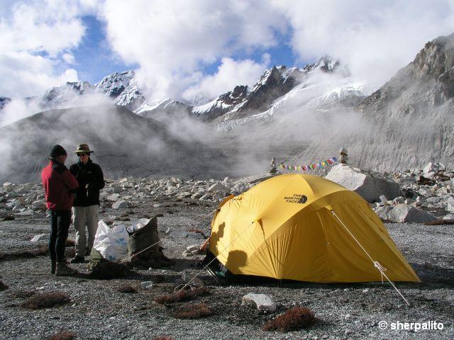 Jacco and myself reached Baruntse Base Camp after 7-7.5 hours walking on mostly glacier, arriving at 2.30 PM, going almost non-stop with a light rucksack.