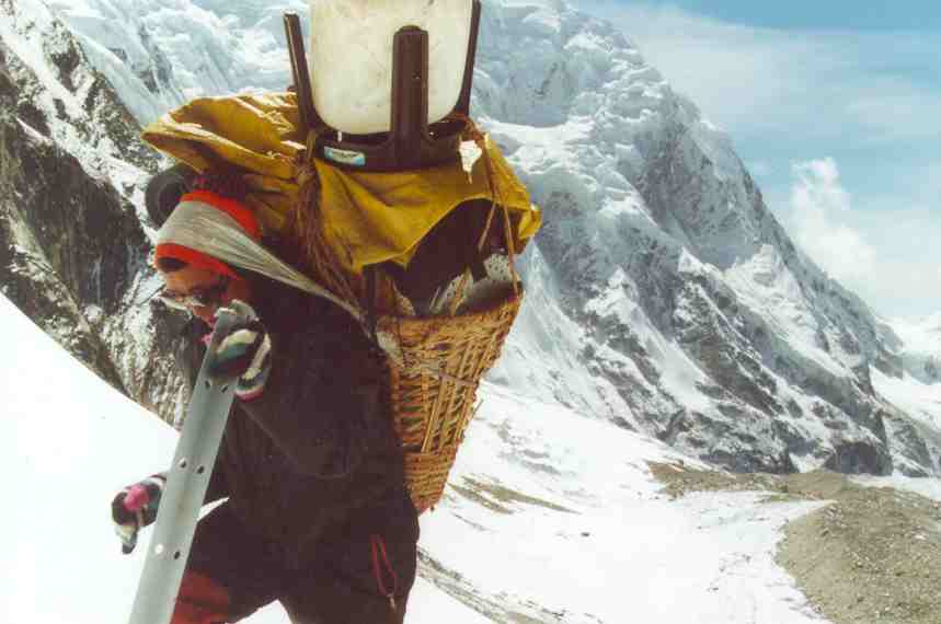 Kitchen boy ascending the Trashi Labtse pass (5700 m)