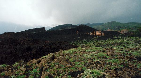 Recent lava flow and cinder cone (middle) at Provenzana, just before a
