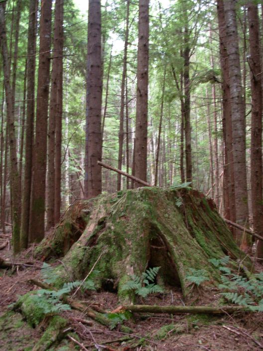Deek's Lake, 1100 m altitude. ................................. Giant cedar tree trunk, cut 100 years ago.