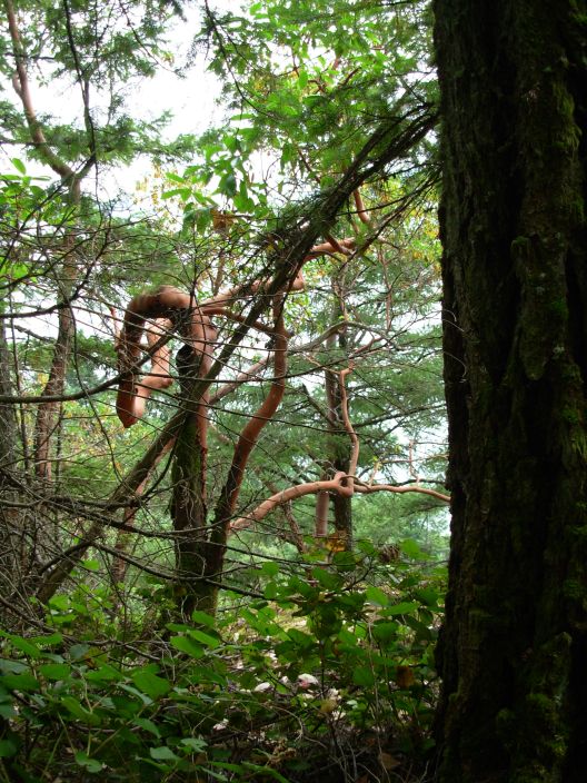 On the way back we took the longer detour to have bettter views at the ocean. Sign posts are fairly clear. Here our 80 year old lady suddenly slipped and rolled over her back but luckily was not injured. Close to the coast and only a few hundred meter above the main highway we saw the typical naked trees that only grow near the sea in moist salty air.