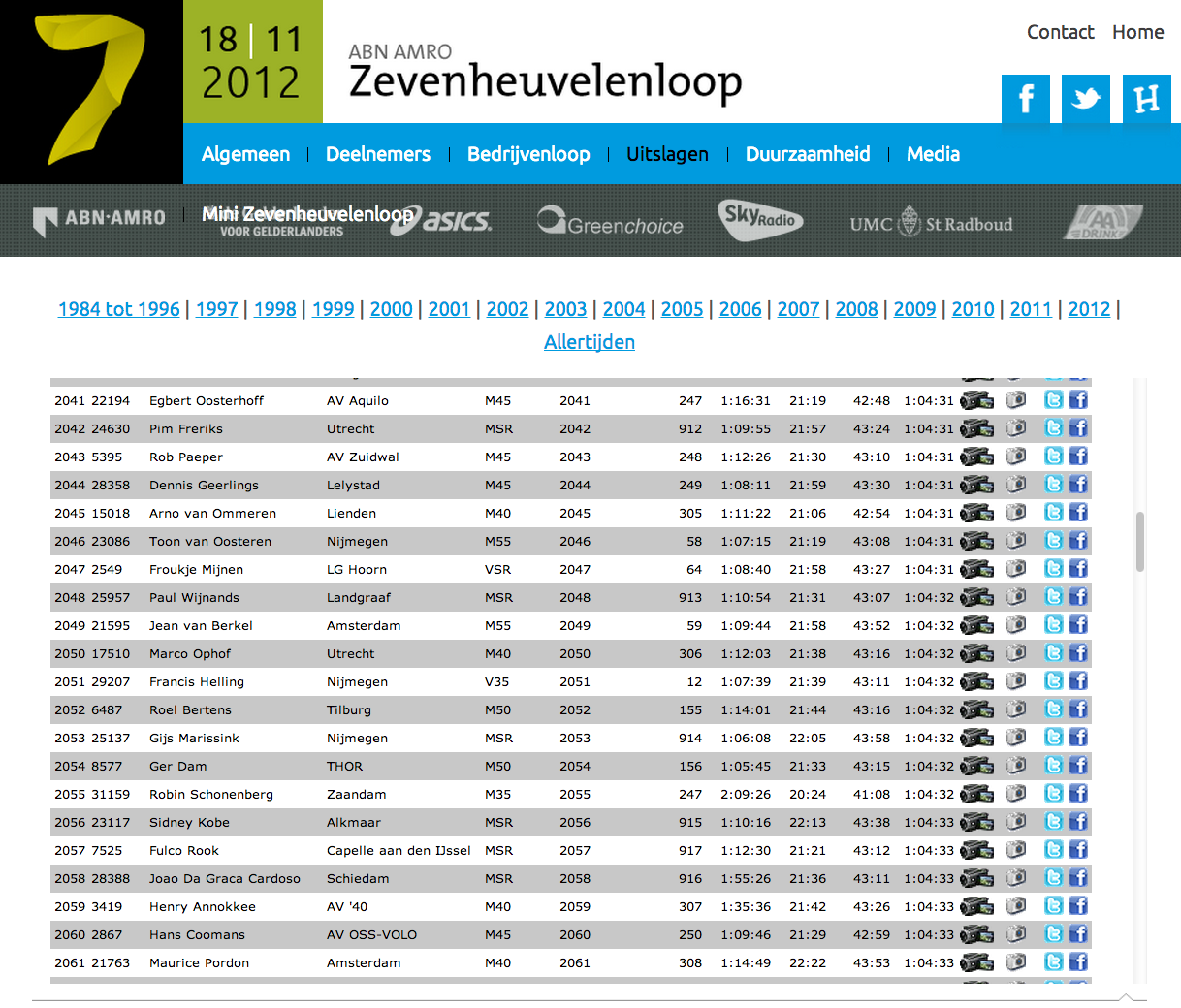 The zevenheuvelen run is an event in Nijmegen in the Eastern part of Holland, and organized on the third sunday of November. The main attraction is the zeven hills, a rare feature in Holland.