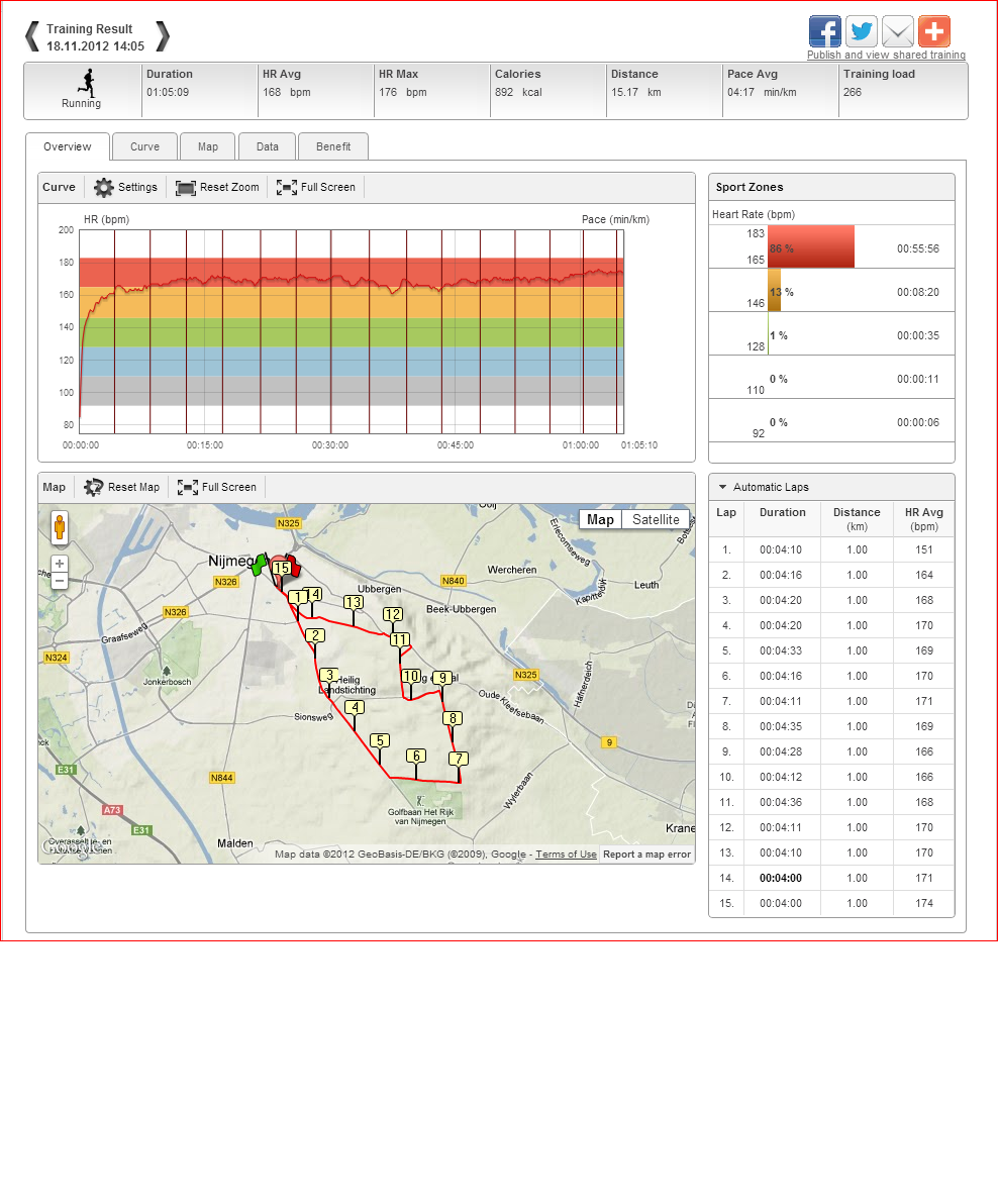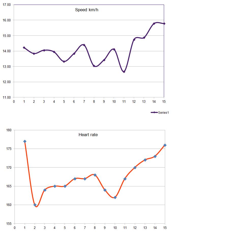 I finished with a 160 m lead or 37 sec of my running mate, but still within view. Last two km I did an average of 15.8 km/h with a heart rate going up to 176.