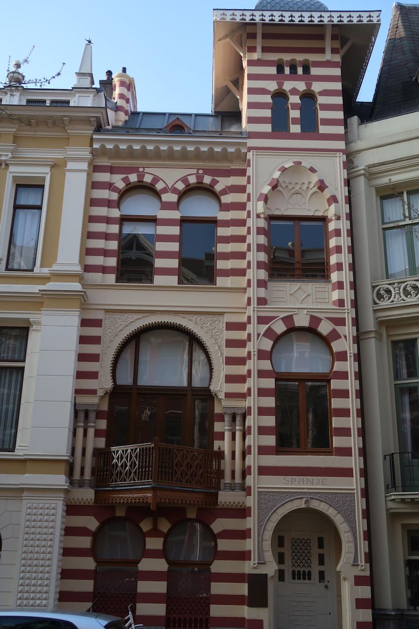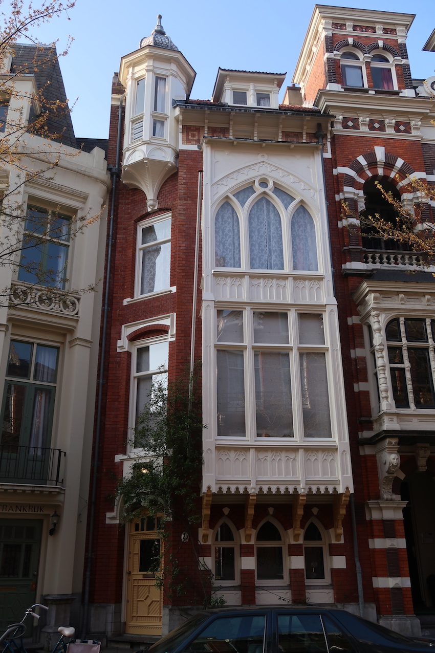 Typicals houses from countries in Europe in the Roemer Visscherstraat 20 - 30A, near the Vondelpark, in Amsterdam
