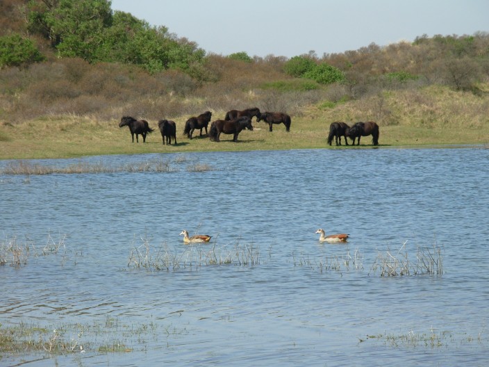 Black ponies, removed after 2007. On the lake 500 m North-West of Cremer Lake, across from the near the bird watcher shelter.
