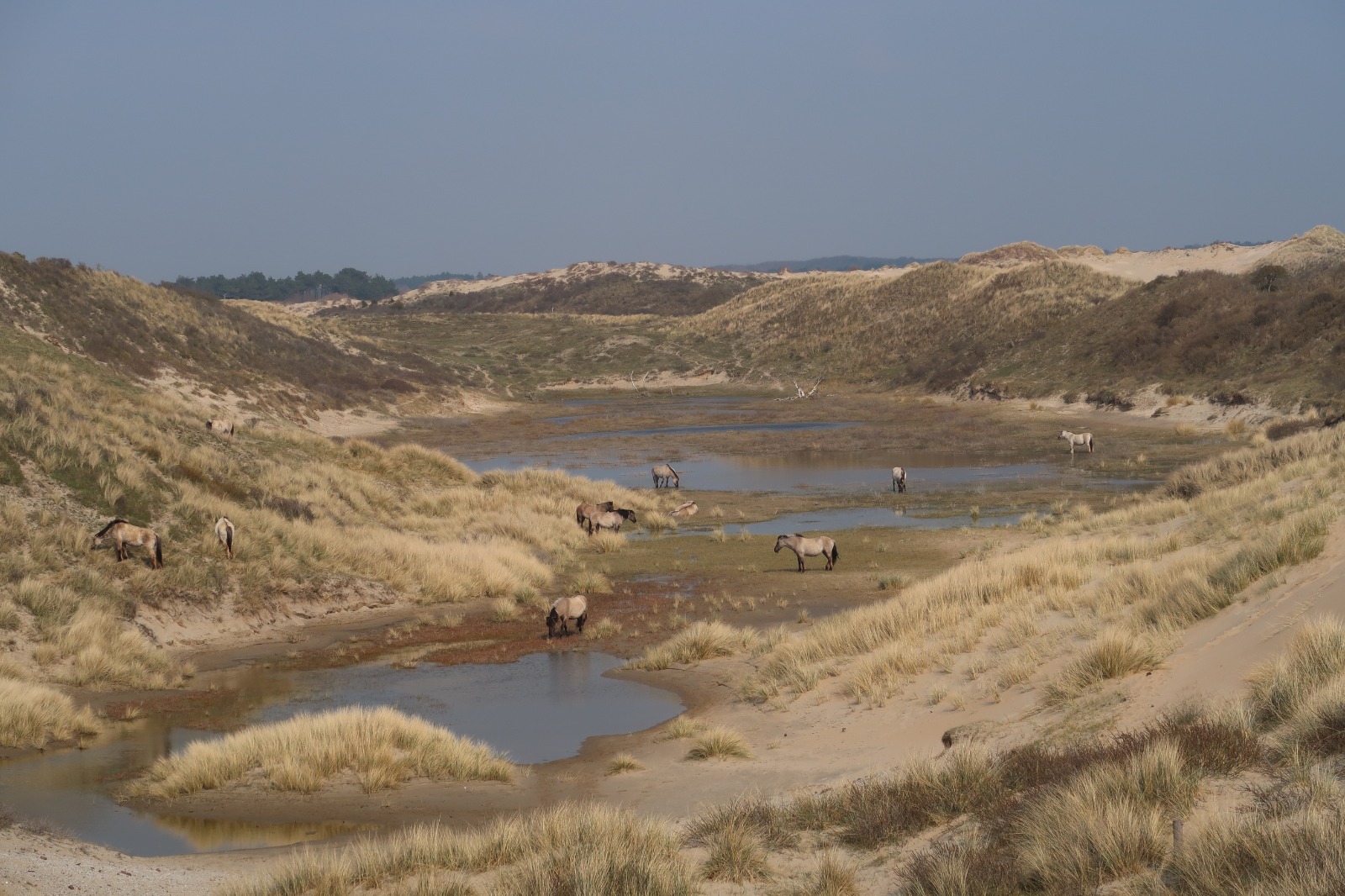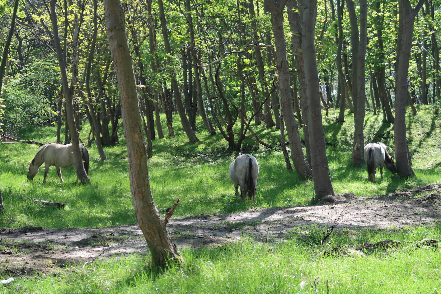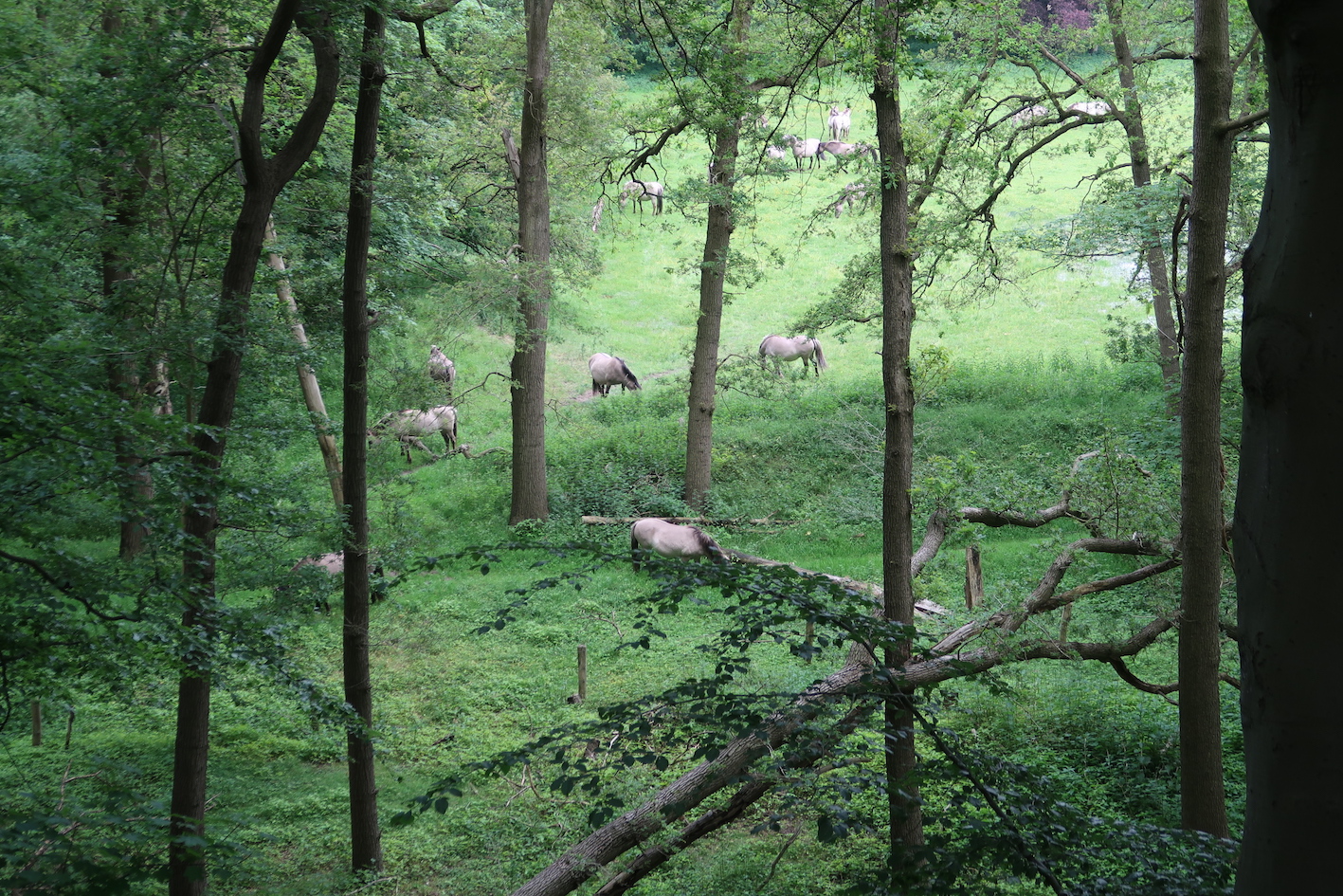 Around 20 Koninks horses at the rewilded (since at least 40 years) Duinlust Park.
