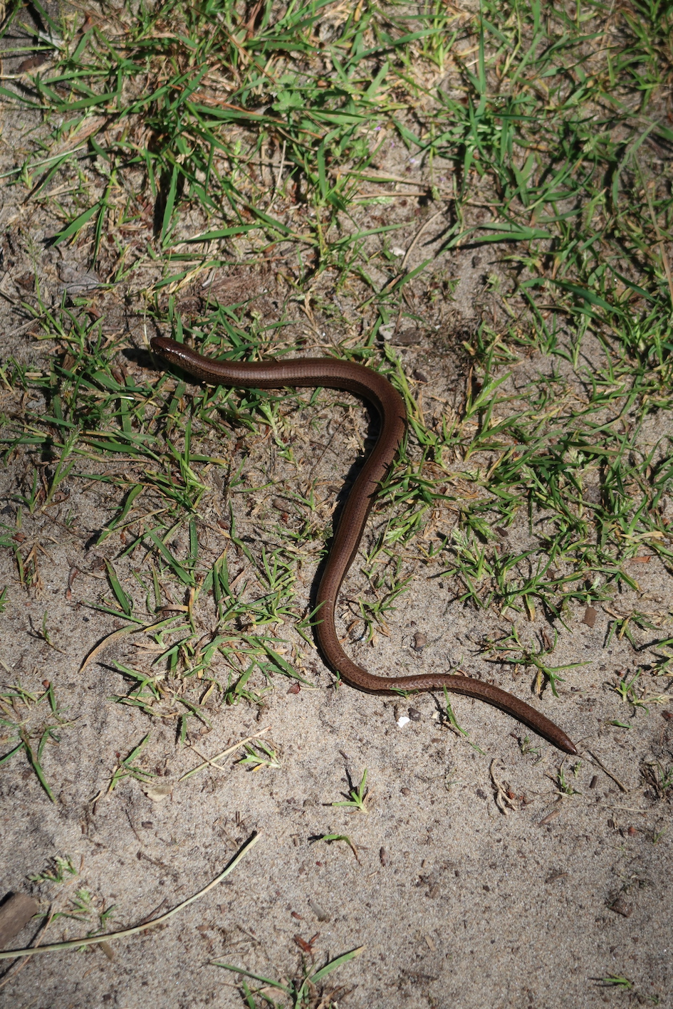 Hazelworm ( Dutch) = Slow Worm (English), not a snake but a lizzard species without legs. North-East of the house close to the Noorderweg Oost and cycle path.