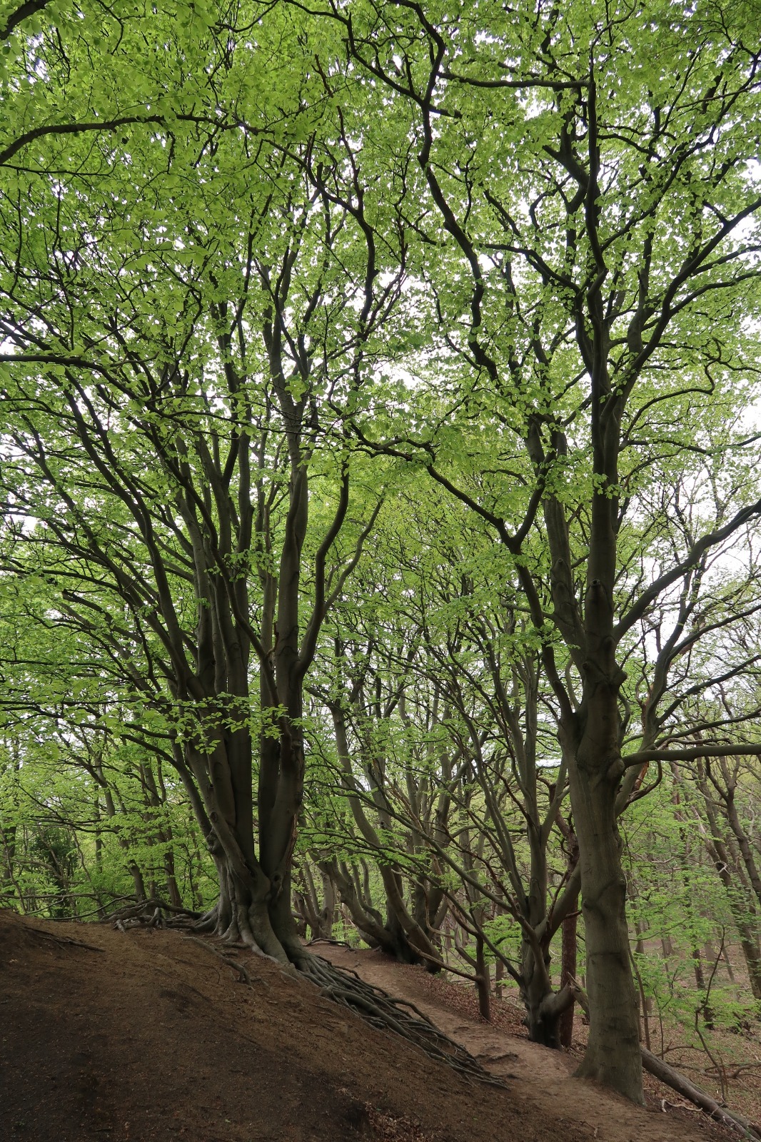 Beech trees at most Eastern dune row along the now closed (and re-wilded) Jachtlustpark. Summer. South of Duin en Kruidberg.