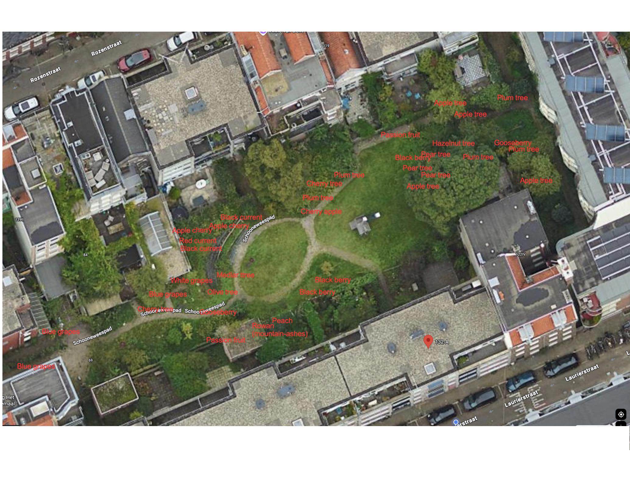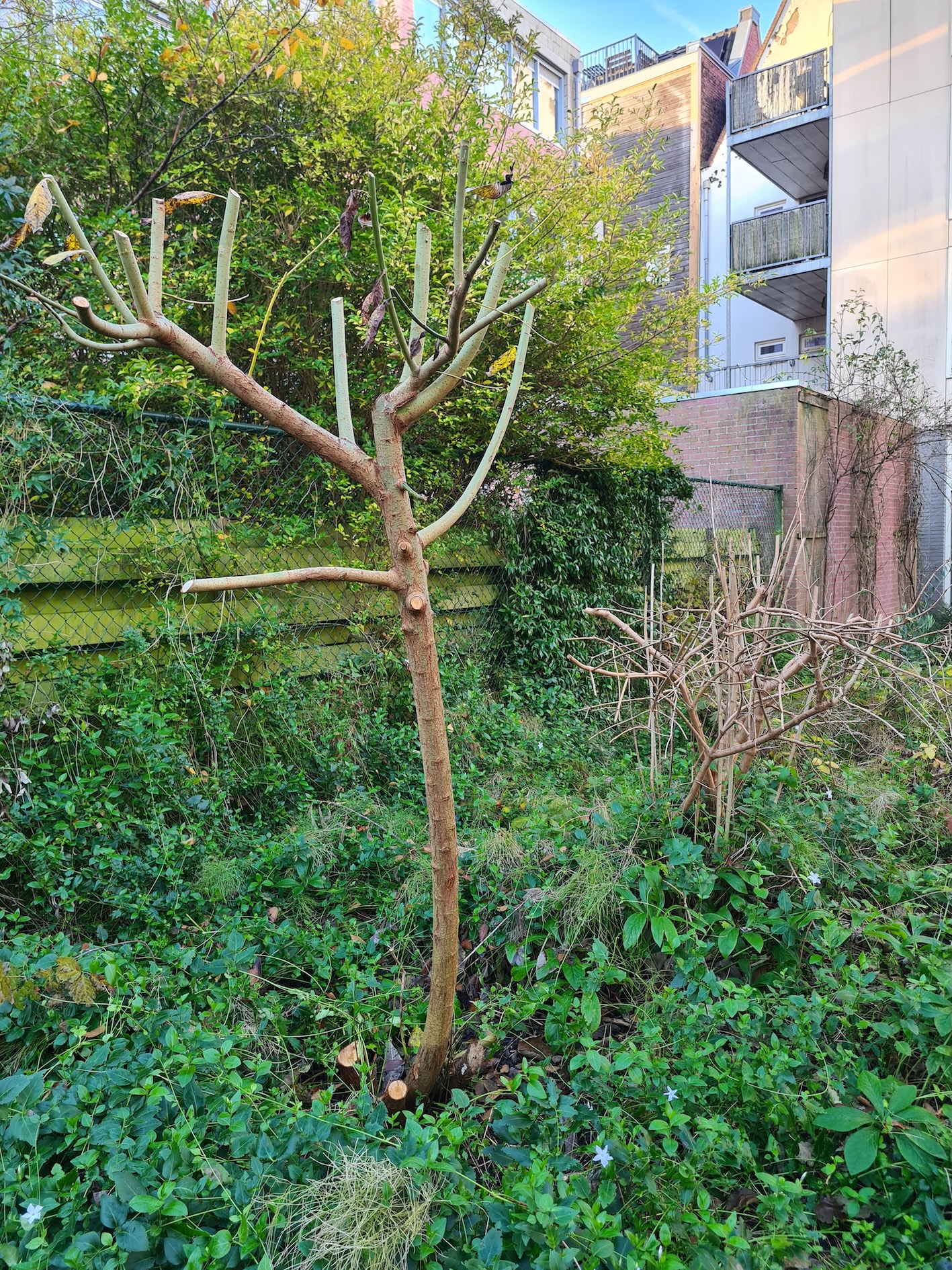 The two cherry trees were hidden in weed, one covered with hop and the other one, between the apple cherry and plum tree, covered with various ground covering plants.
