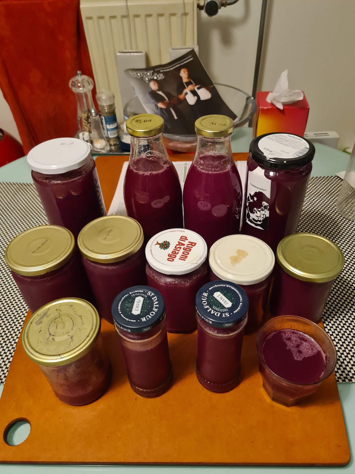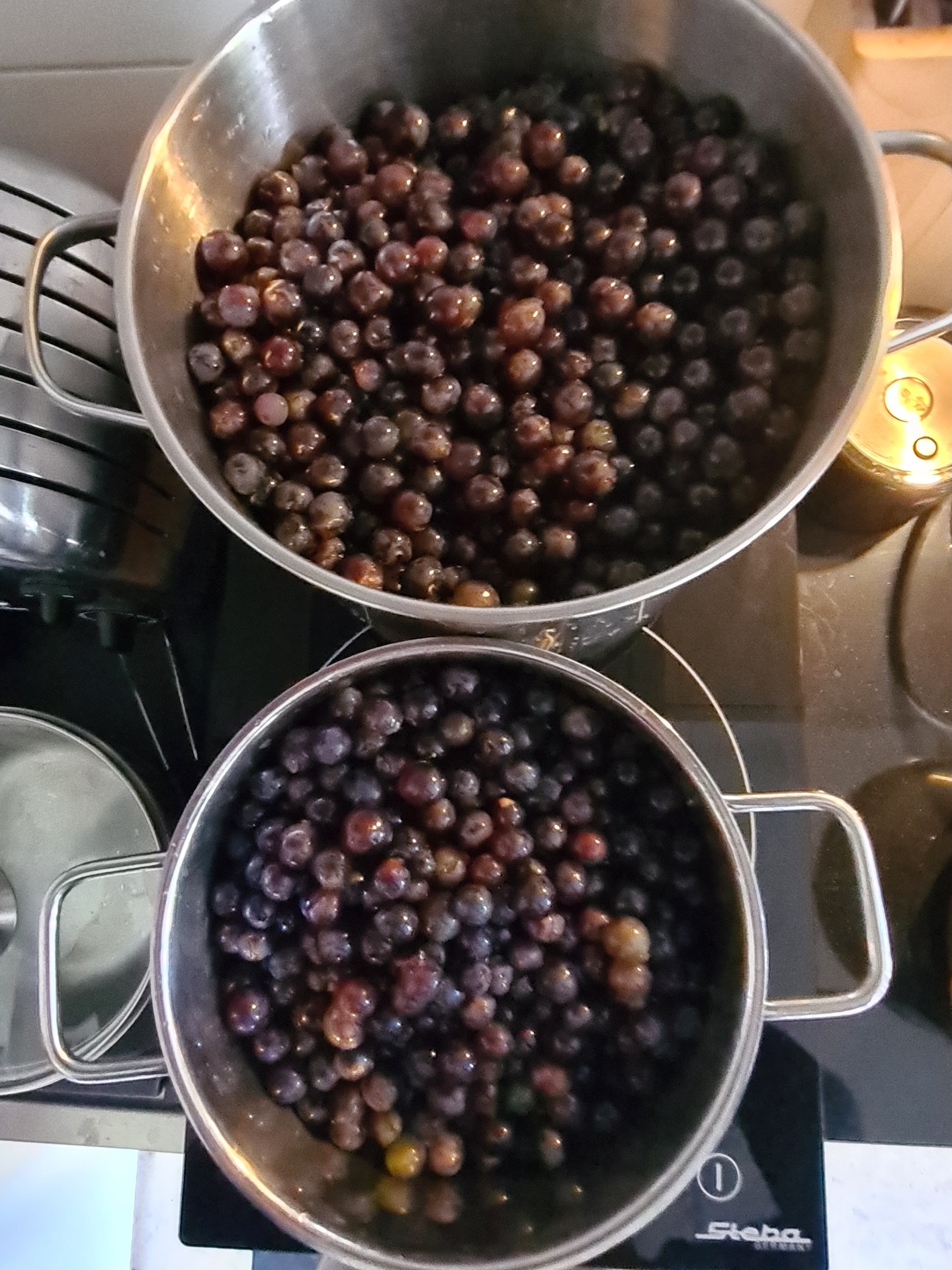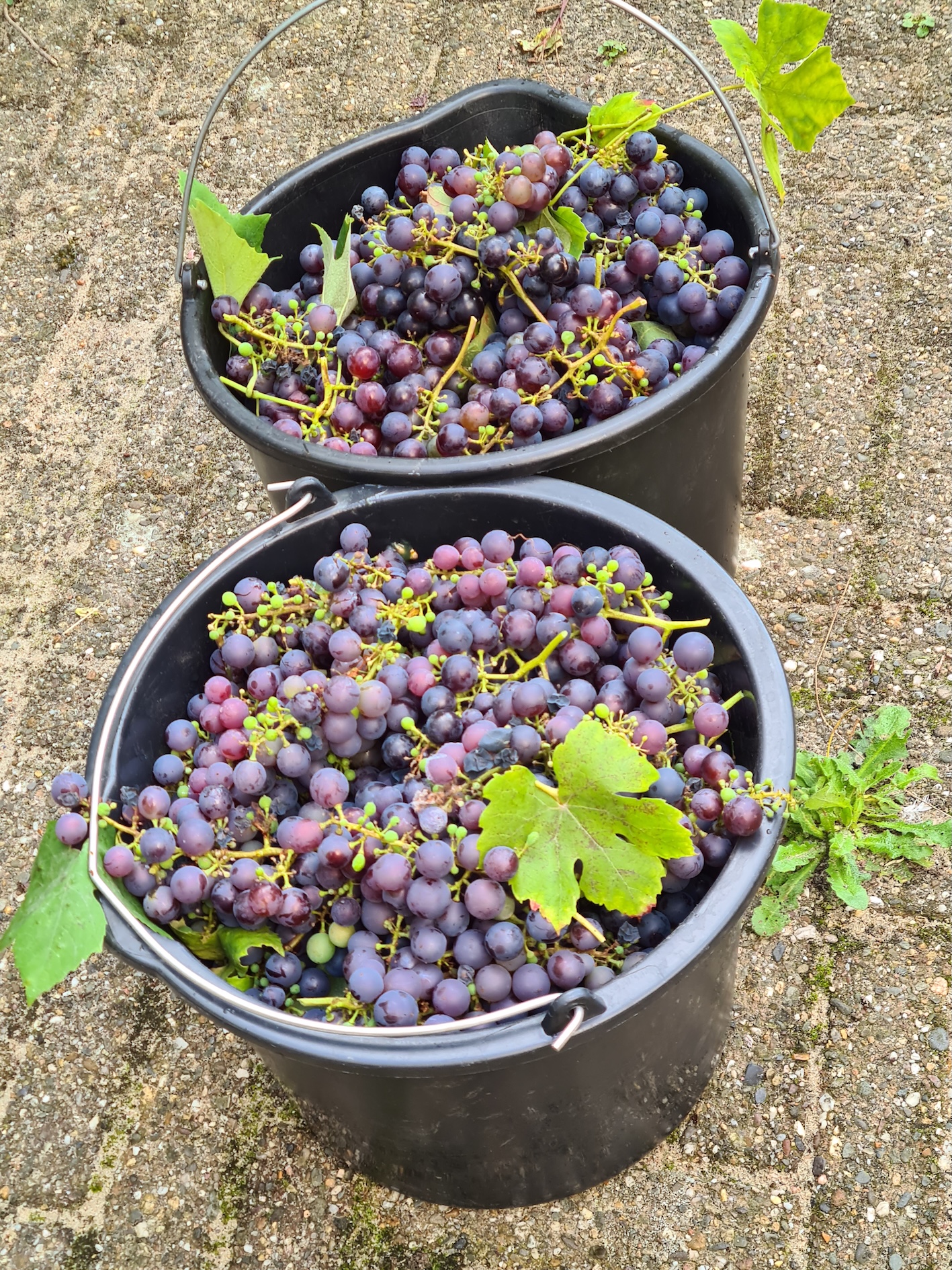 I picked around 10 buckets and created some 15 liters of grape juice and conserved them using an old recipe, see below. They will last for one year.