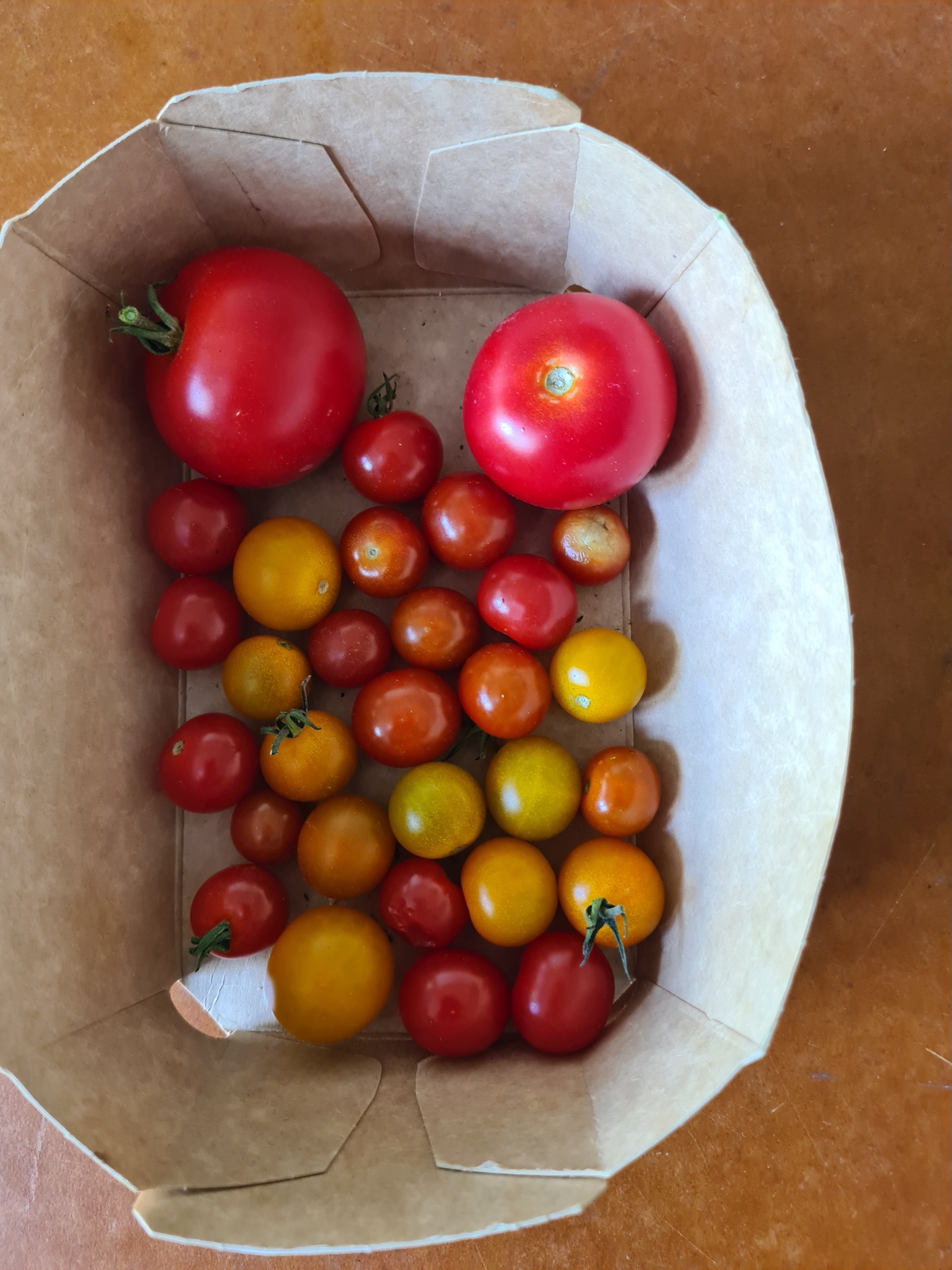 Twice a week we picked green beans and tomatoes. The cherry tomatoes were early.