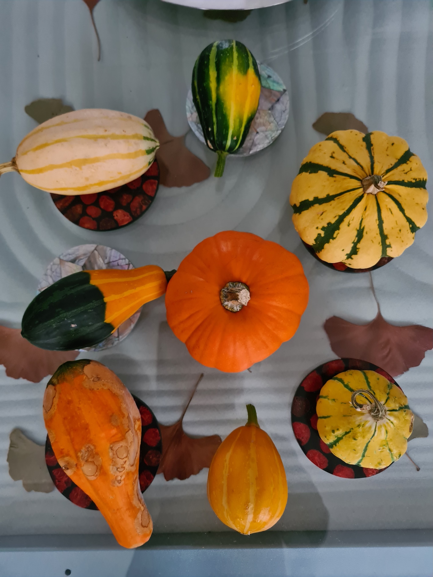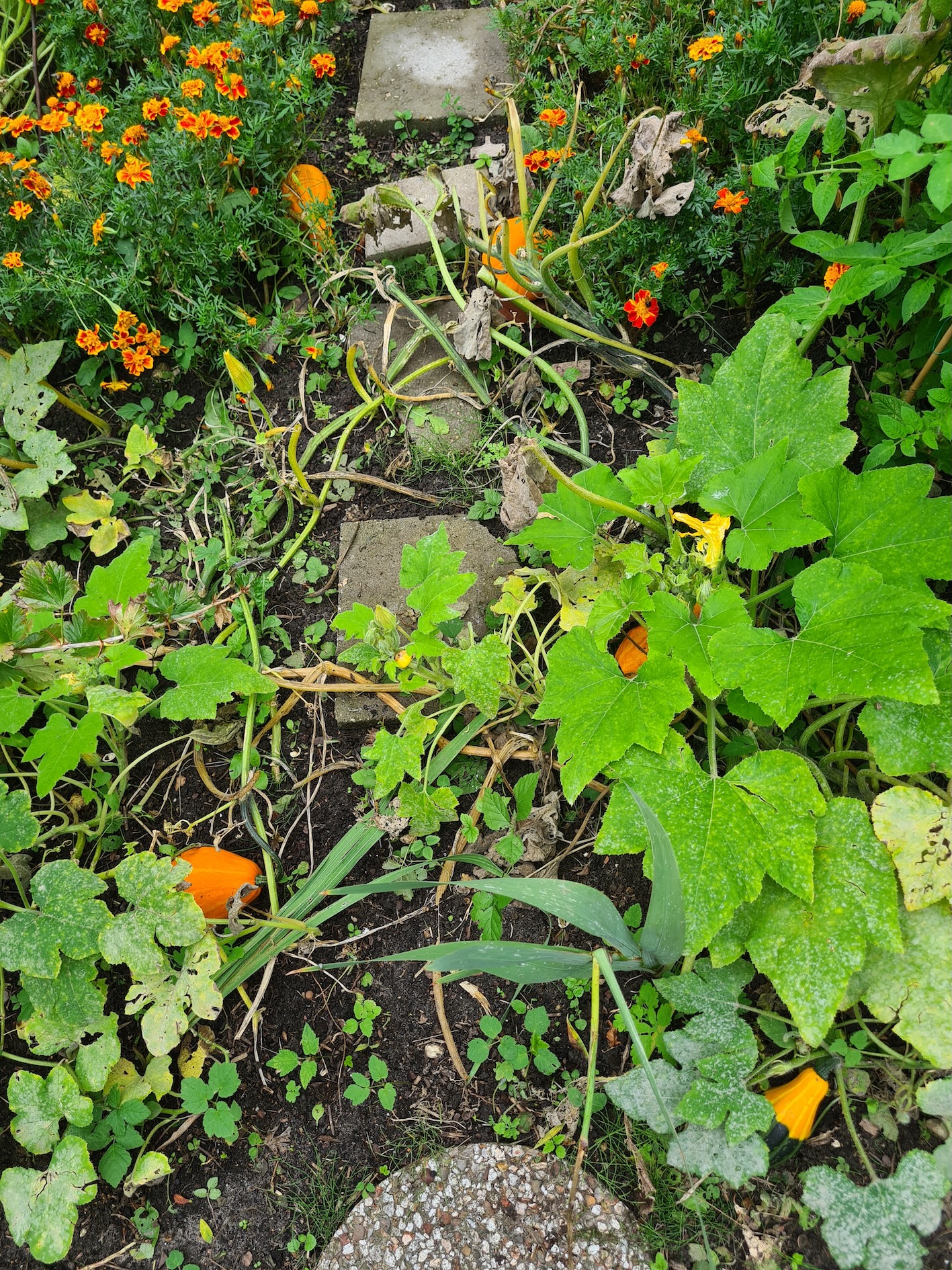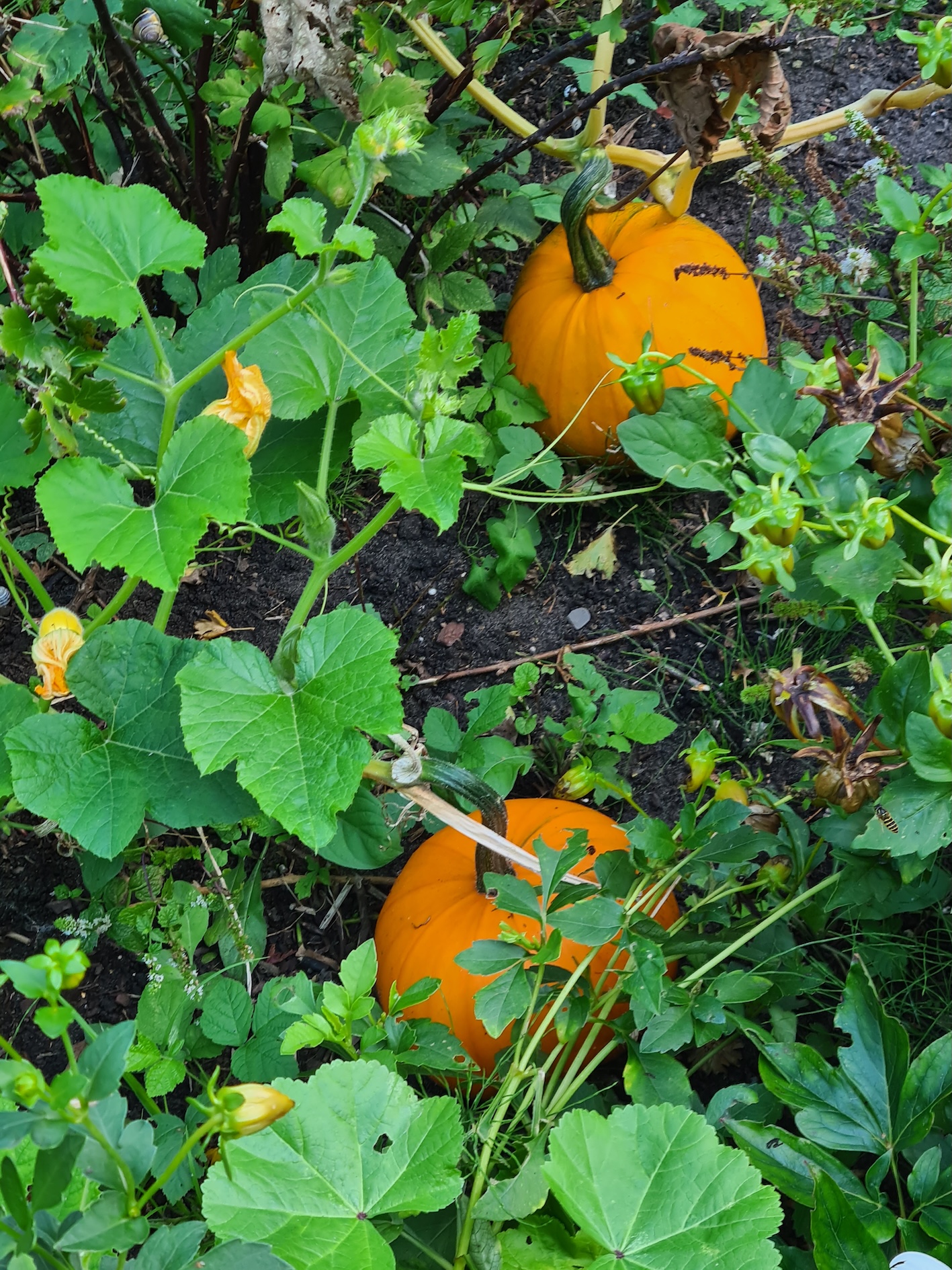 The pumpkin harvest is excellent, we have around 11 pumpkins, two round ones are already large.