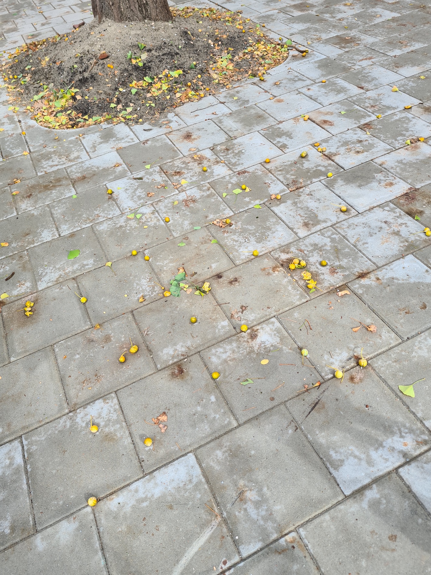 Gingko fruits on Newtonstreet, foul smell. Worse than dog shit when taken inside stuck to your shoes as it has a sticky glue.