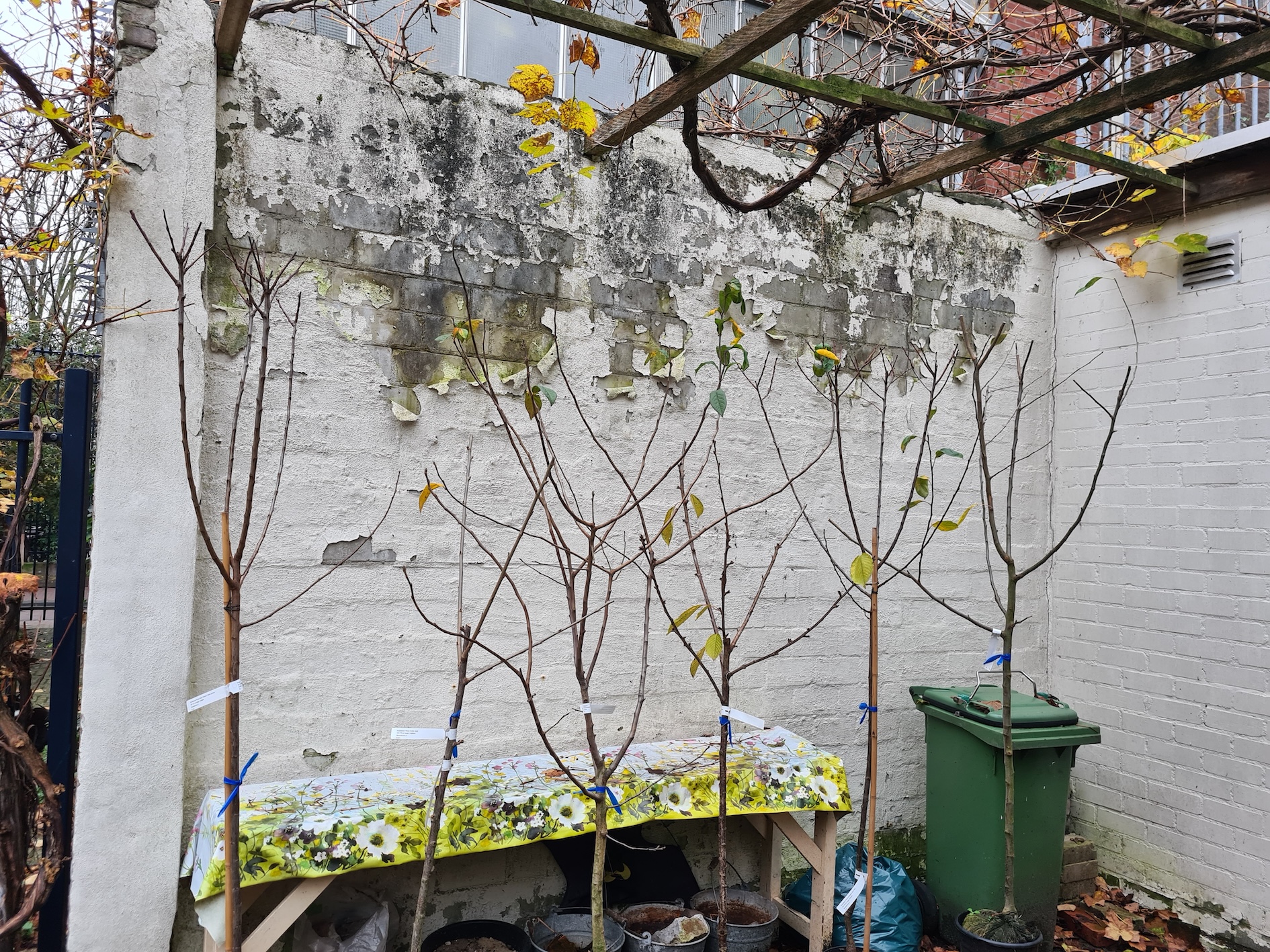 Six new fruit trees: Medlar, plum, cherry and apple.
