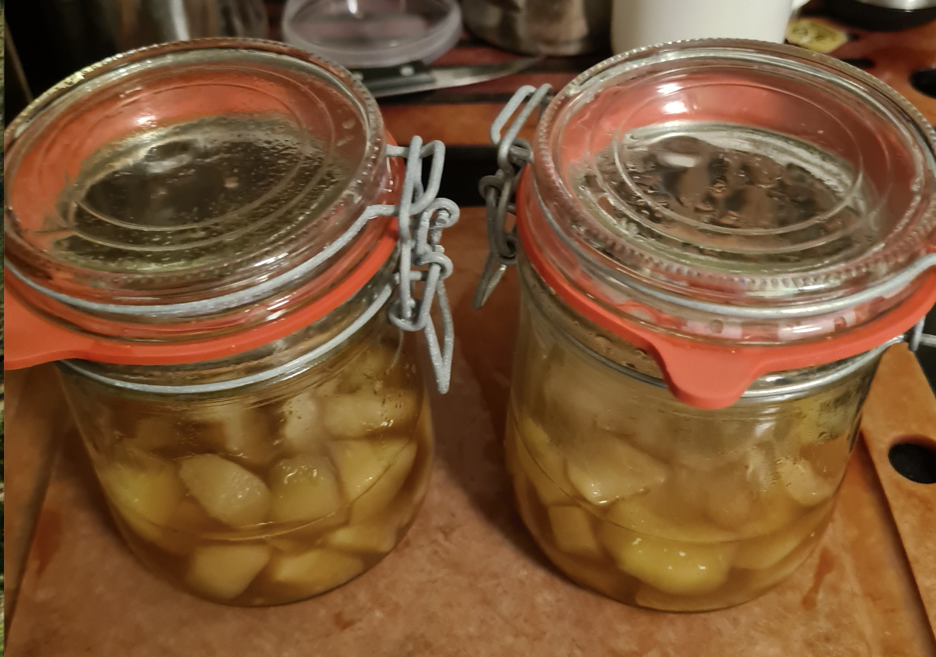 The two peer trees had several pears but they remained green and when turning yellow, they tarted to rot. We cooked the green ones instead.