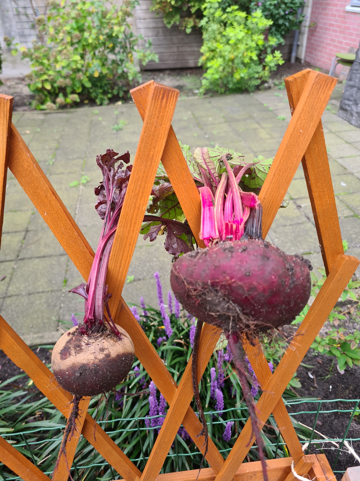 The beetroot harvest is poor, most are too small, only three have a good size but two were eaten by woodlice.