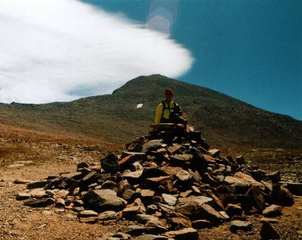 Mount Dana at 11500 feet (3500 m) altitude. Note big marmot right of cairn.