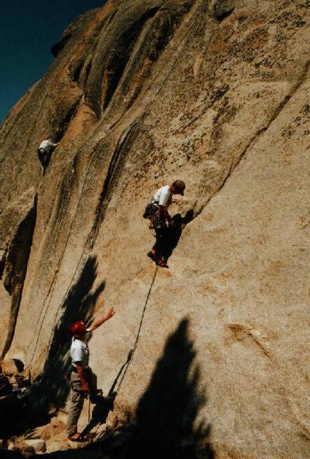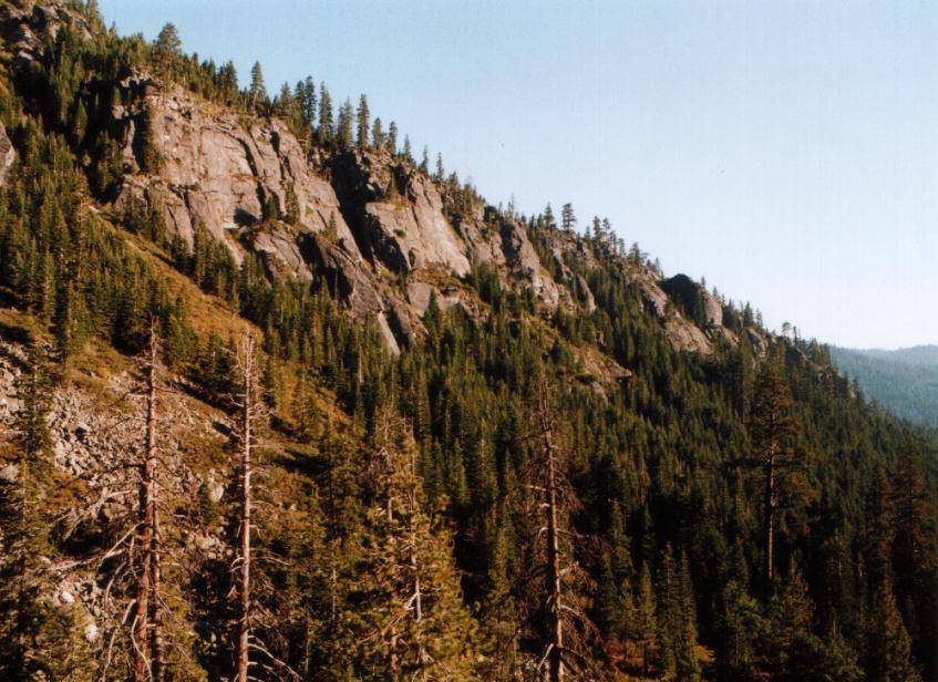 between Placerville and South Lake Tahoe. Cliff is about 150 m high. 3 pitch routes. Bring a 60 m rope.
