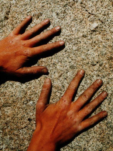 | Injured hands after a day of ferocious crack climbing using the wrong technique. |