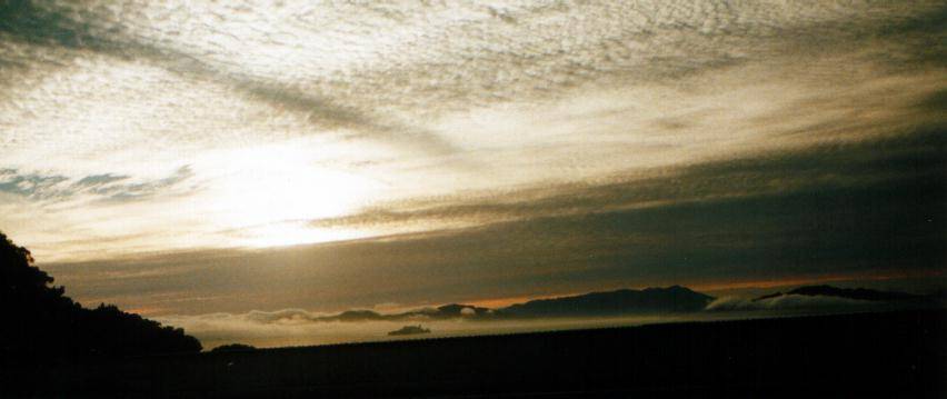 with Sausolito, towards San Francisco in the fog. Note the forested suburbian area. |