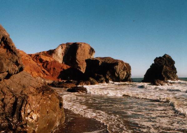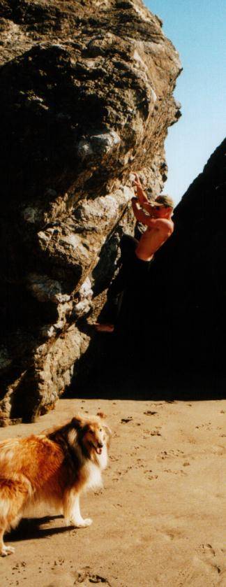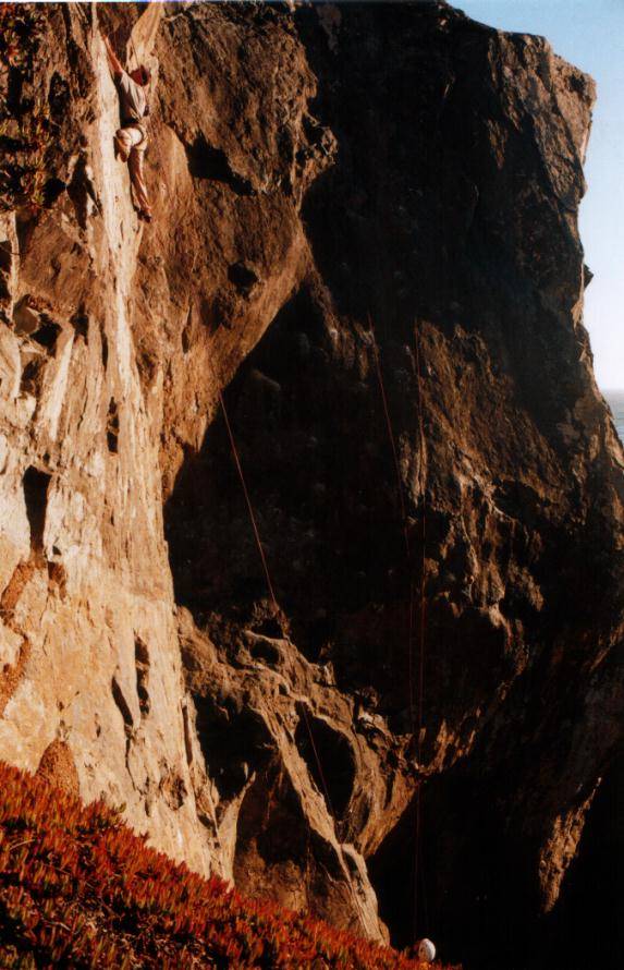 Stinton Beach on Highway 1 North. Has good 5.9 (5c) to 5.13 (7+) rock