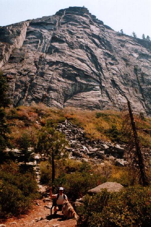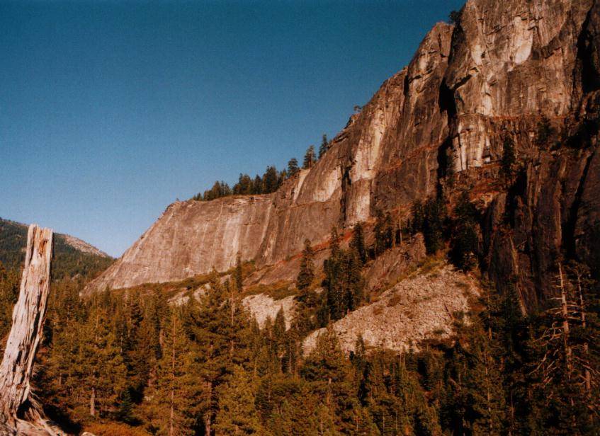 Rock face is 40 minutes walk North-West of Tenaya Lake,