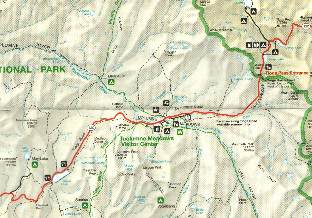 You end up 50 m west of the Road sign of the Tuolumne Lodge